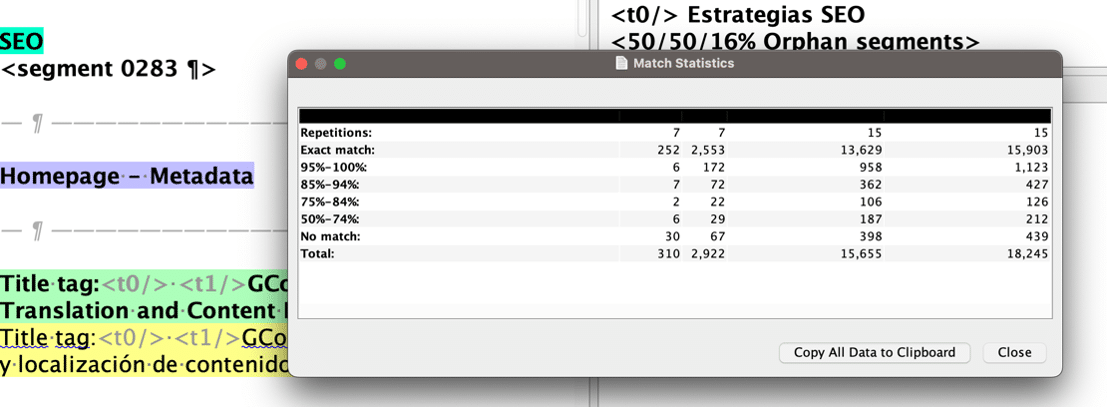 I am used to many commercial and proprietary CAT tools, but when it comes to quick quoting or checking for translation readiness of a source file for a new, potential client, I have a default English to Spanish project in OmegaT set up only for this purpose. This is an open-source tool, compatible with macOS, and it takes me less than three minutes to load a file for translation to get statistics.
