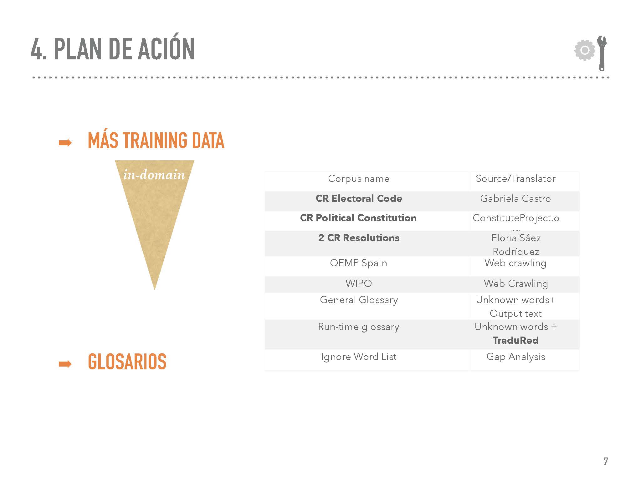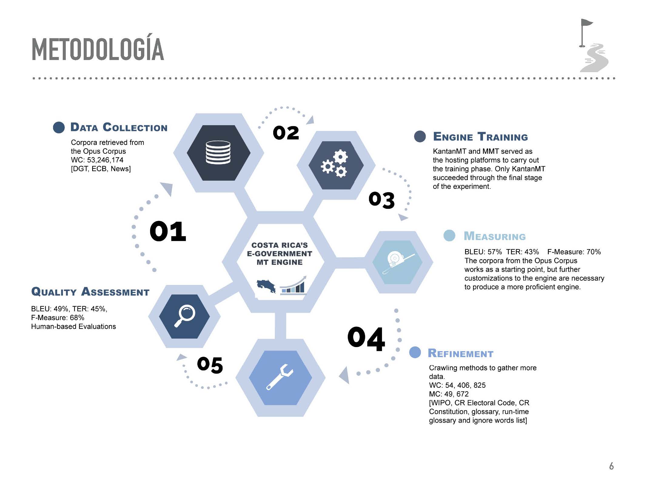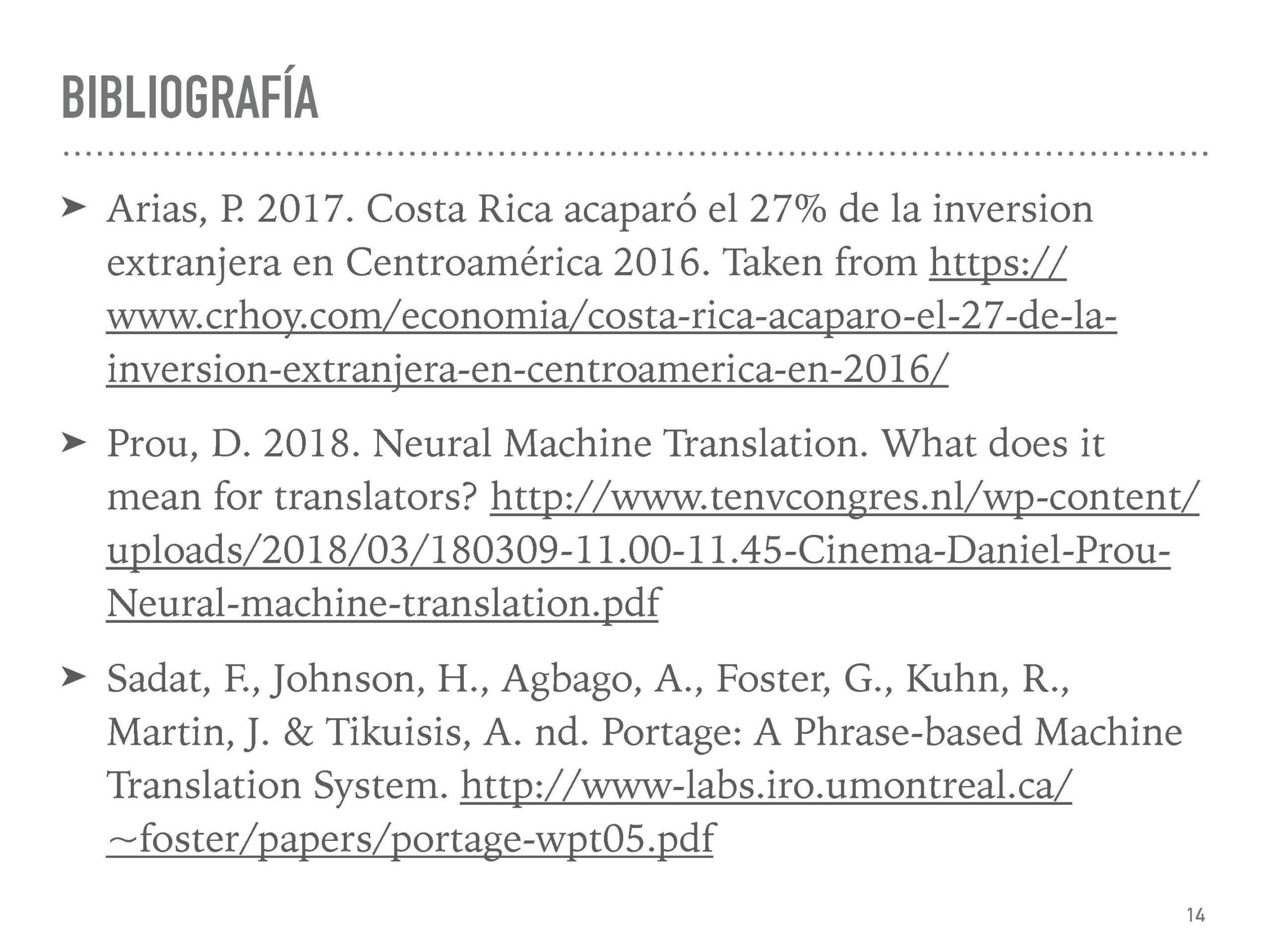 This is an introductory workshop designed to give you an insight into the architecture and phases of data-driven translation engines. Besides training a PB-SMT engine in an open-source platform, we will be discussing different open-data efforts and approaches that could favor further research and the localization of the e-government of Costa Rica.
